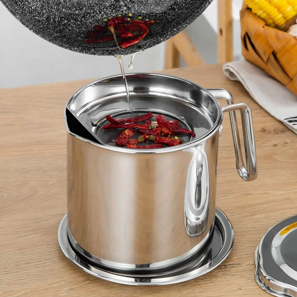 Family Use Stainless Steel Lard Tank Oil Filter Pot Large Capacity Filter Oil Lard Oil Storage Tank