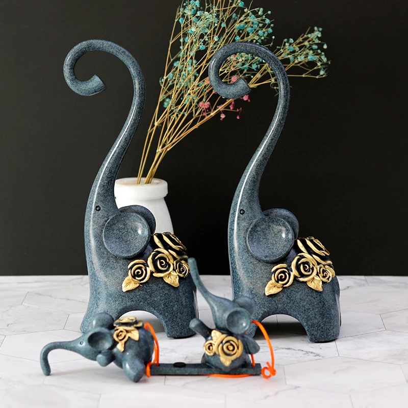 Resin Abstract Elephant Family Statue Swing Elephant Sculpture Adornment Home Decor Birthday Souven