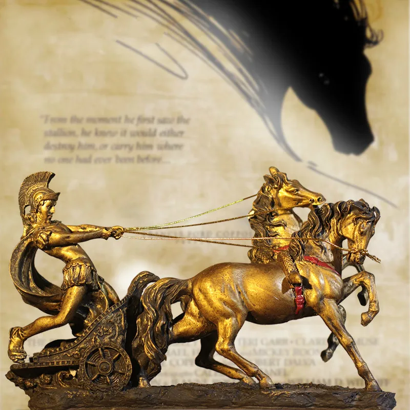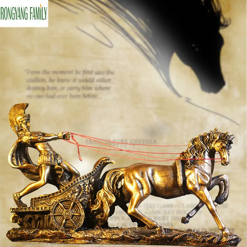 Ancient Rome Ornament Sculpture Spartan Character Statue Resin Spartan Carriage Warrior Figurines H